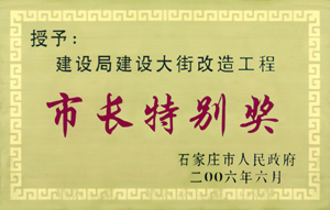 我公司2006年承建的建設(shè)大街工程,10個月的工期僅用100天便優(yōu)質(zhì)高效地完成了施工任務(wù),獲石家莊市“市長特別獎”。